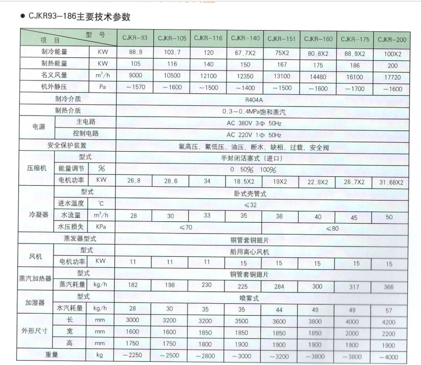 控制電路電源: AC 220V 1Φ 50Hz 安全保護裝置: 氟高壓、氟低壓、油壓、斷水、缺相、過載、安全閥