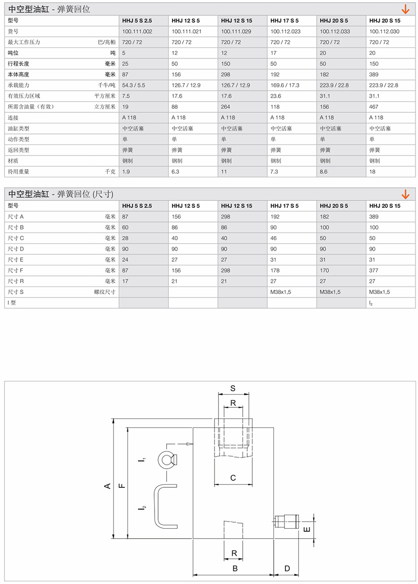 | 中空型彈簧回位油缸 | |||