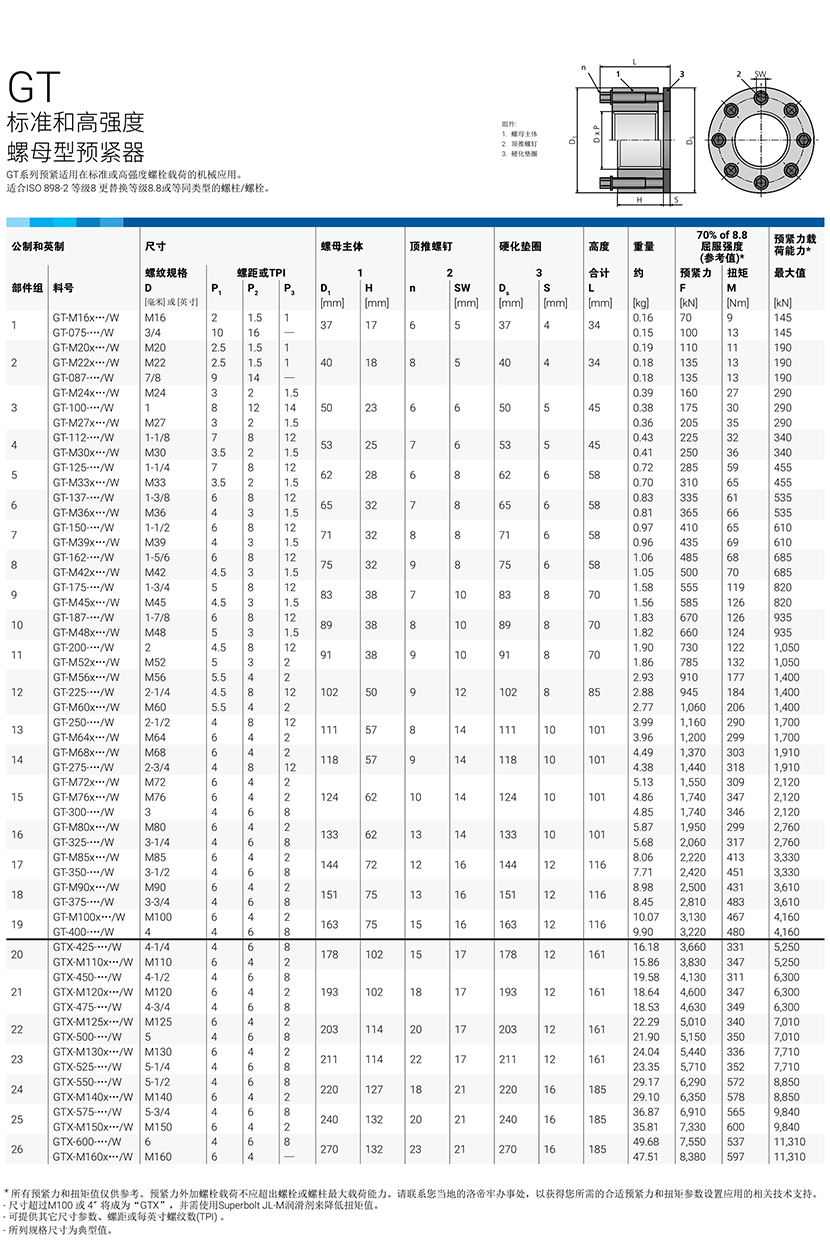 | 標準和高強度螺母型預緊器 | |||