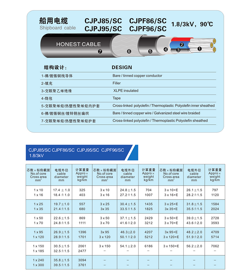類型: 船用電纜 名義直徑: 19.7±1.0mm