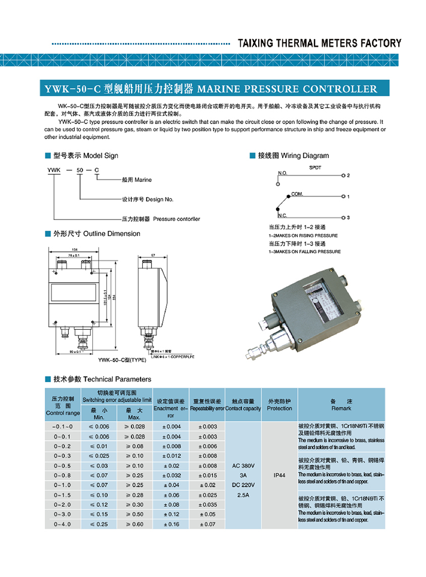 | 類型: | 壓力控制器 | 工作電壓: | AC 380/DC 220V |