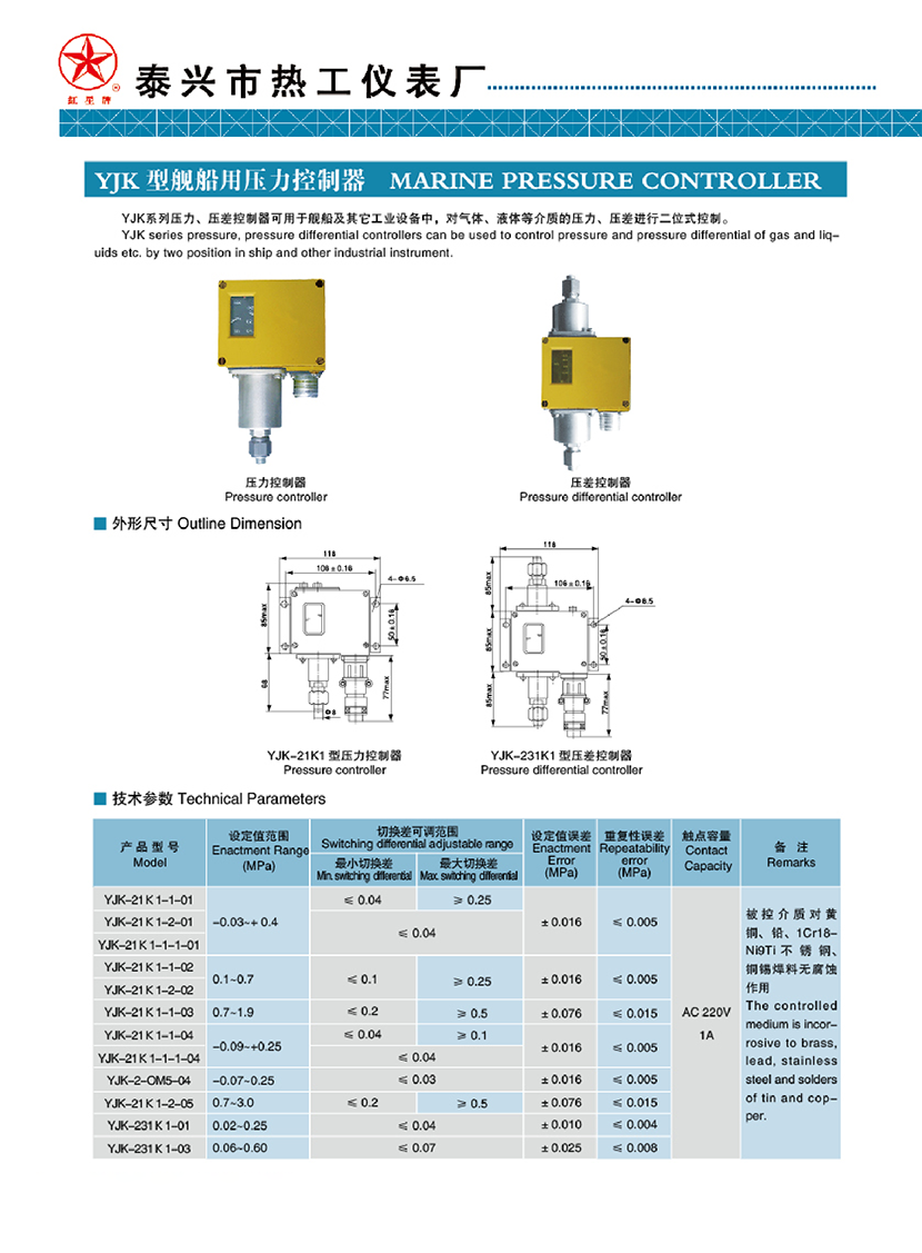 | YJK型艦船用壓力控制器 | |||