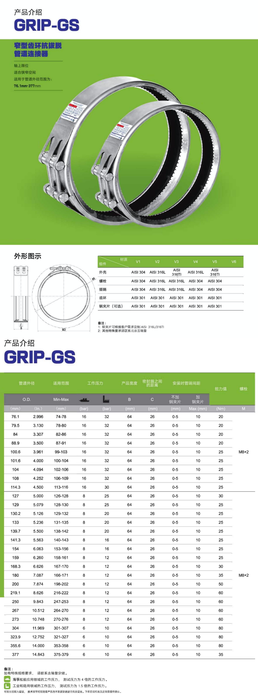 管道外徑: 114.3mm 適用范圍: 113~116mm
